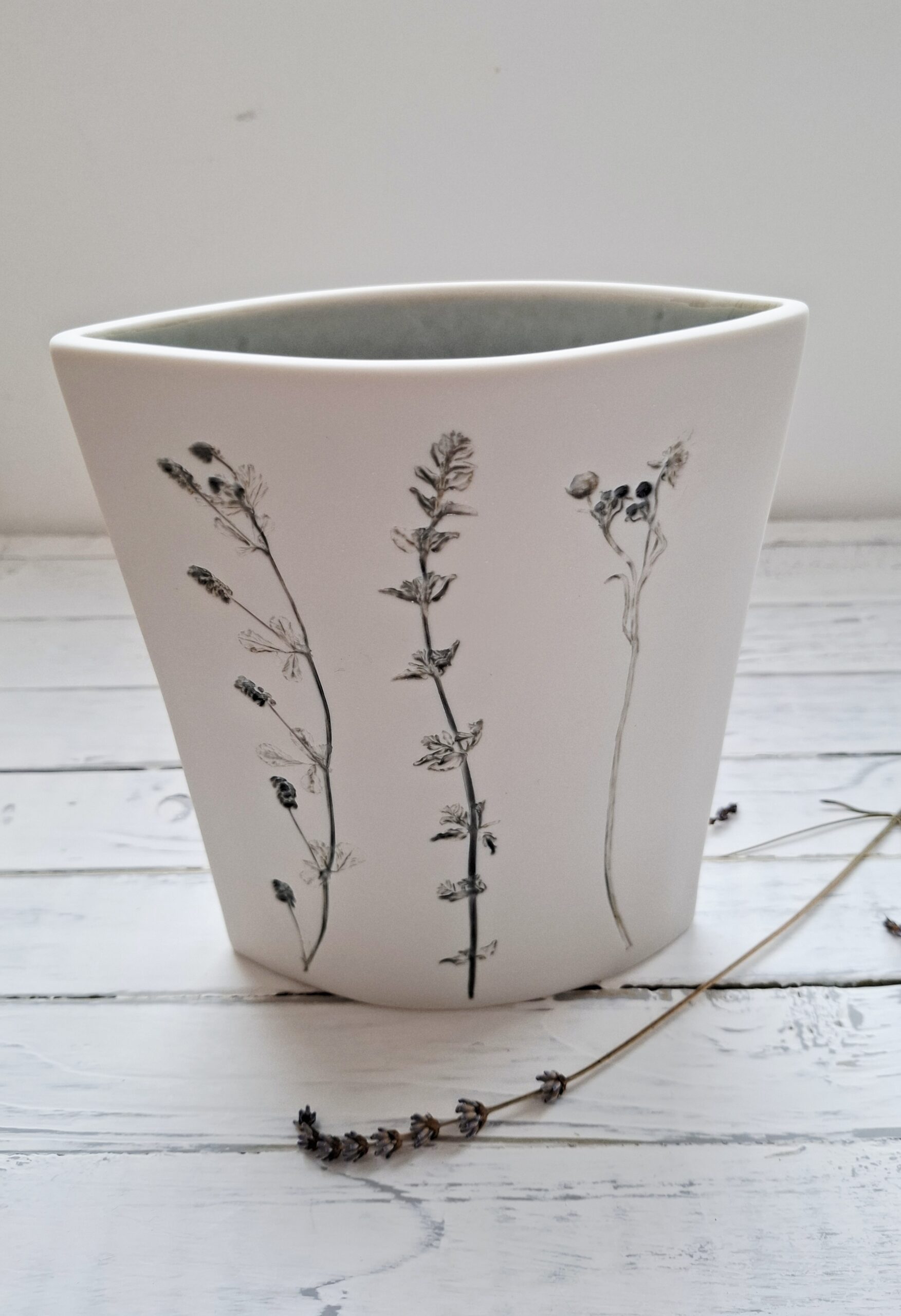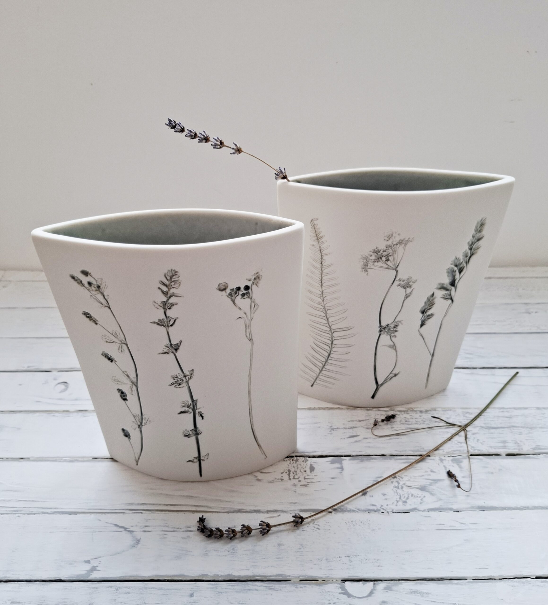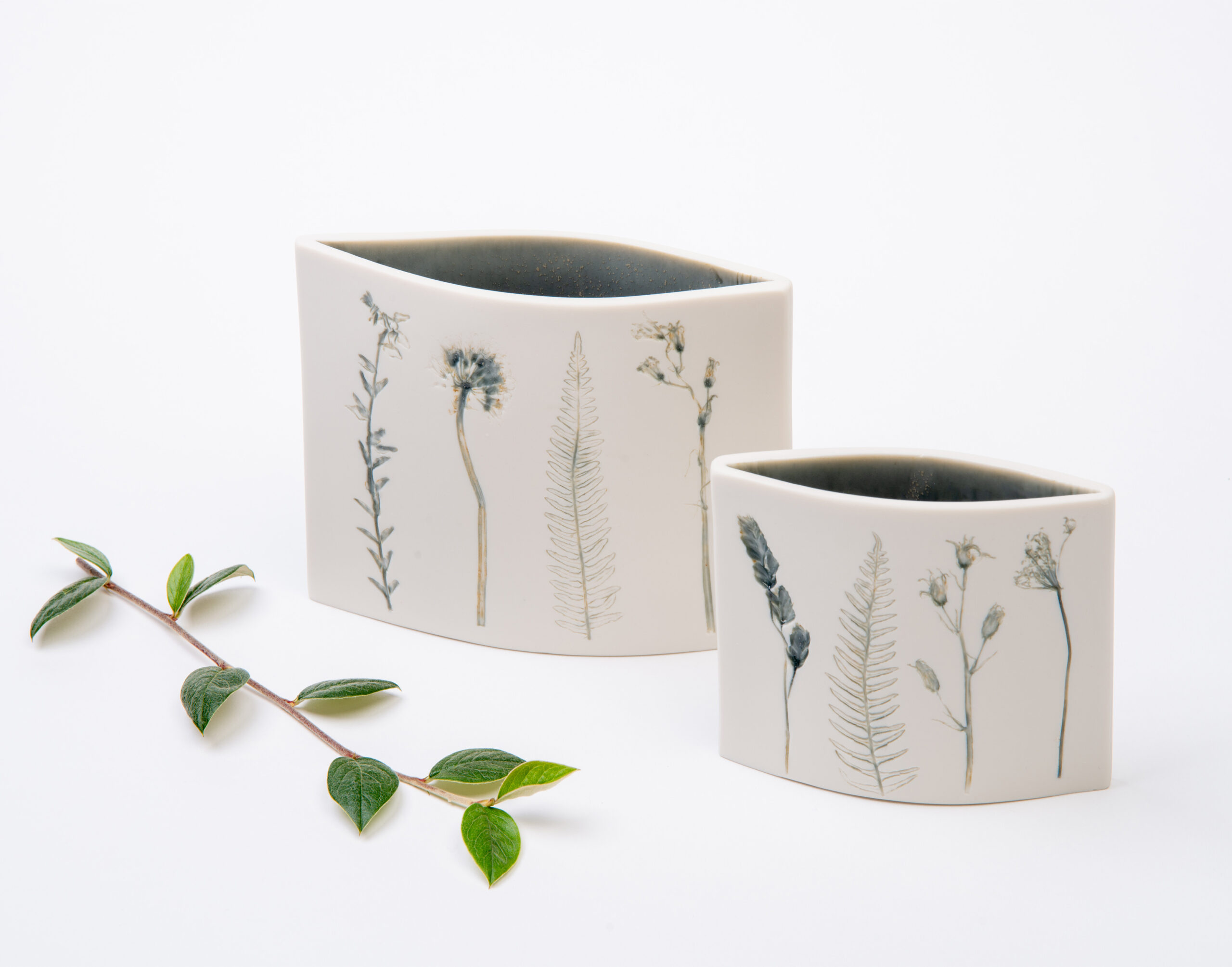 In 2007 she moved to the inspiring Connemara region of Ireland to pursue her dreams. Here she continued to develop her Porcelain ranges and was increasingly inspired by her natural environment and began working with impressed floral details.